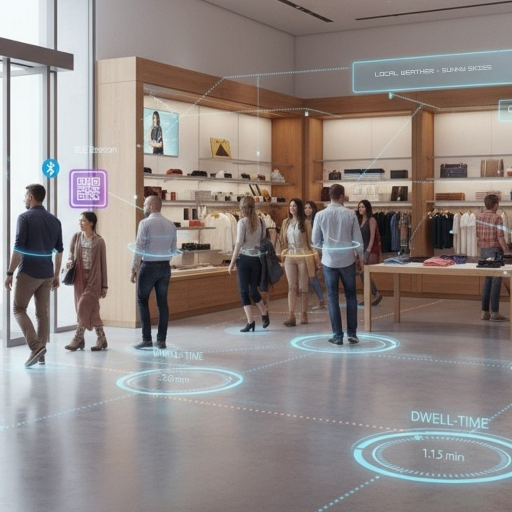 Trigger creative variations when customers enter specific store zones/aisles, based on a recent web-page view or their purchase intent